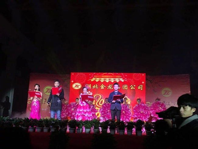 2月3日晚上6點,經(jīng)過一個月的籌備,湖北金龍集團公司迎新春文藝晚會隆重拉開帷幕,公司所有職工及家屬共同享受了這場視覺盛宴。晚會節(jié)目都由公司員工結(jié)合公司產(chǎn)品和實際情況自編自演的,其中有用公司產(chǎn)品做成服裝的T臺秀、小品、三句半、相聲、書畫表演、二胡、舞蹈等近三十個節(jié)目,同時晚會期間公司領(lǐng)導(dǎo)發(fā)出了上萬元微信紅包,點燃現(xiàn)場員工及家屬的熱情,引來了公司附近很多群眾的觀看。